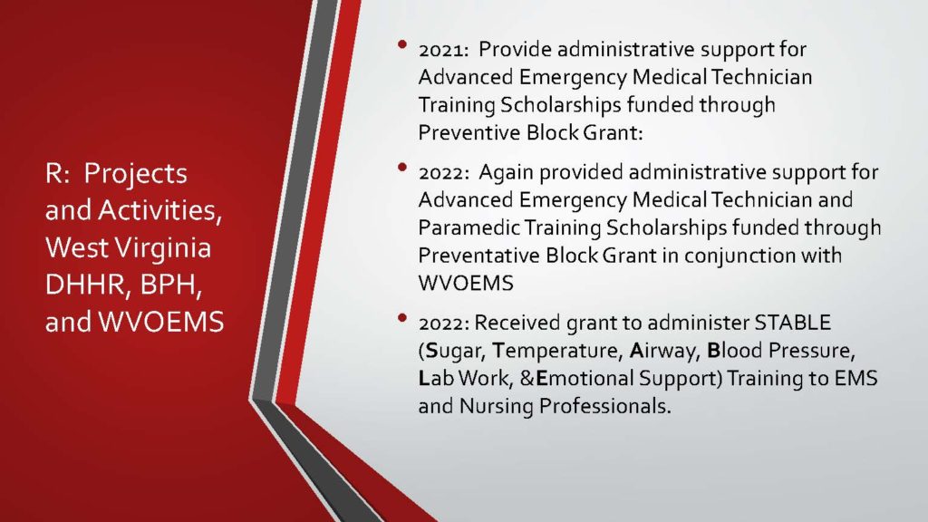 - Continuous training has been given to hospital trauma registry personnel throughout West Virginia.